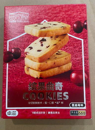 Bột mì, dầu thực vật, đường trắng, dâu tây khô (lượng bổ sung ≥ 6%), bơ (lượng bổ sung ≥ 5%), trứng, sữa bột nguyên kem, bột sữa chua (sữa tươi, đường trắng, muối ăn, phospholipid.