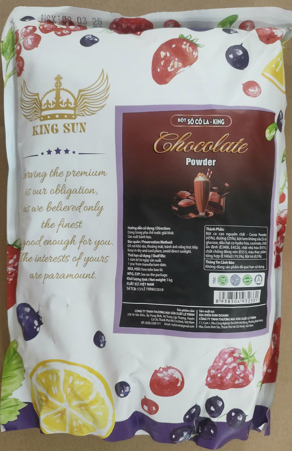 Bột kem không sữa ( siro glucose, dầu hạt cọ hydro hóa, bột sữa gầy, natri casenat, chất nhũ hóa: E471, chất ổn định E340(ii) chất chống đông vón: E551, hương sữa tự nhiên) màu thực phẩm tổng hợp (E122, E127, E133) đường hương khoai môn tổng hợp.