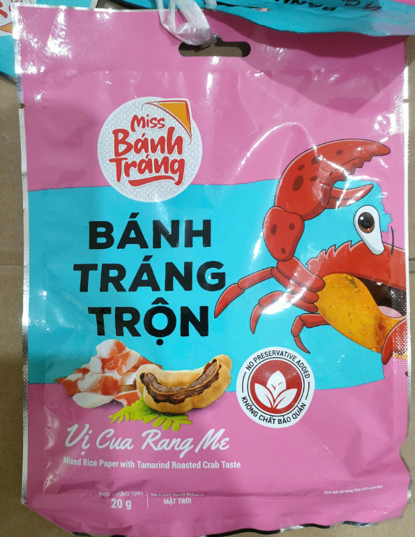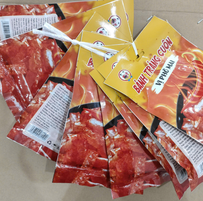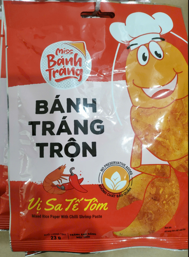 Bánh tráng (60%), hành phi (10%), dầu điều (8%), muối (5%), đường (5%), tỏi sấy (5%), ớt(5%), chất điều vị 621(2%)