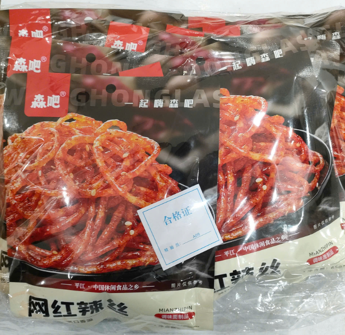 Bột mì, nước tinh khiết , dầu thực vật ,đường, muối ớt , bột gia vị, mì chính , hương liệu tự nhiên,màu thực phẩm.