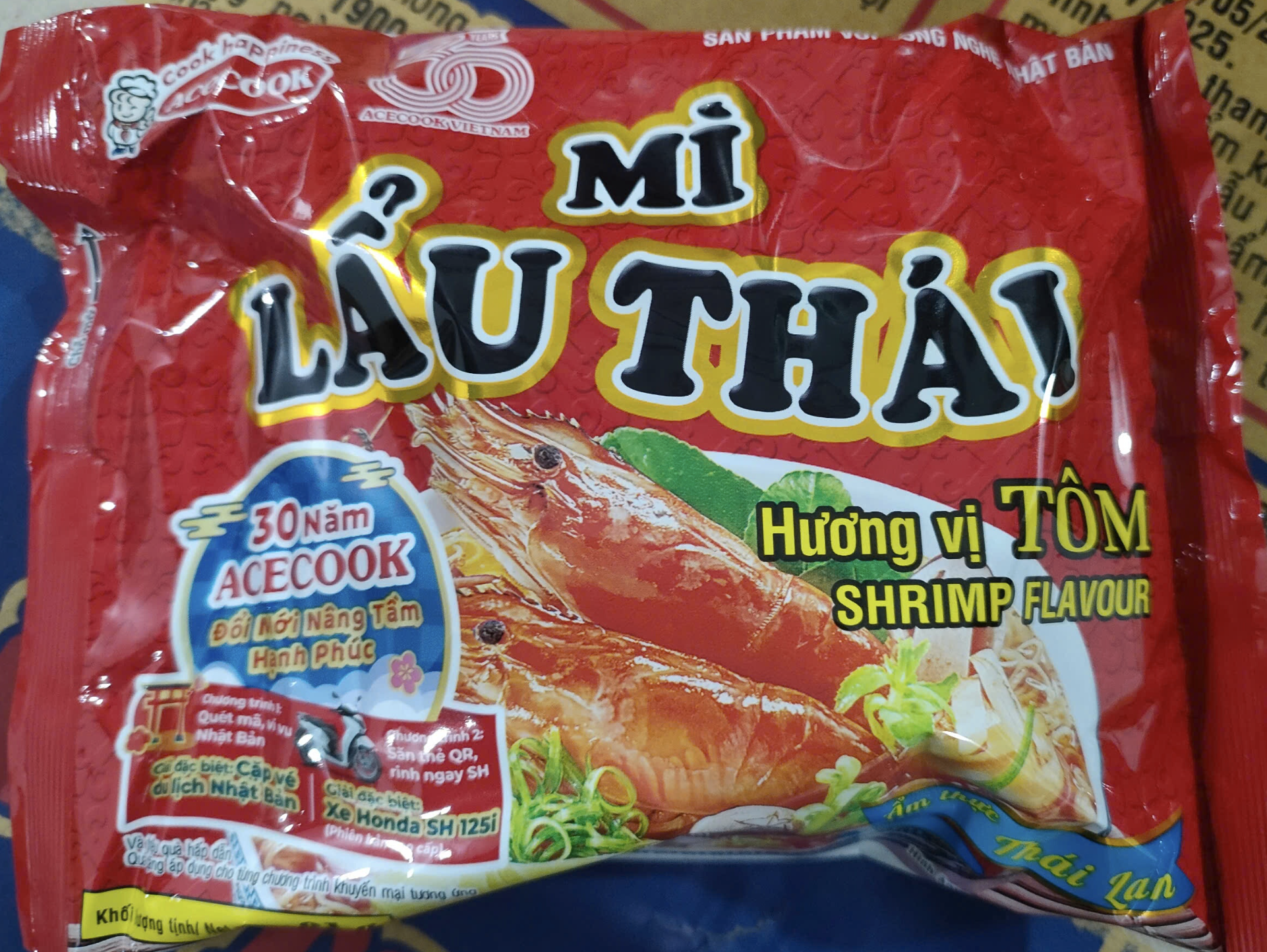 Mì: Bột mì, shortening, tinh bột sắn, muối, đường, chiết xuất từ cá, bột ngọt (E621), pentasodium triphosphate (E451i), chất ổn định (E501i, E500i), chất chống oxy hóa (E320, E321).