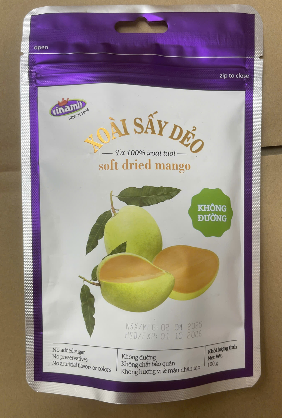 Xoài sấy, đường tinh luyện, chất điều chỉnh độ axit, hương xoài hỗn hợp.